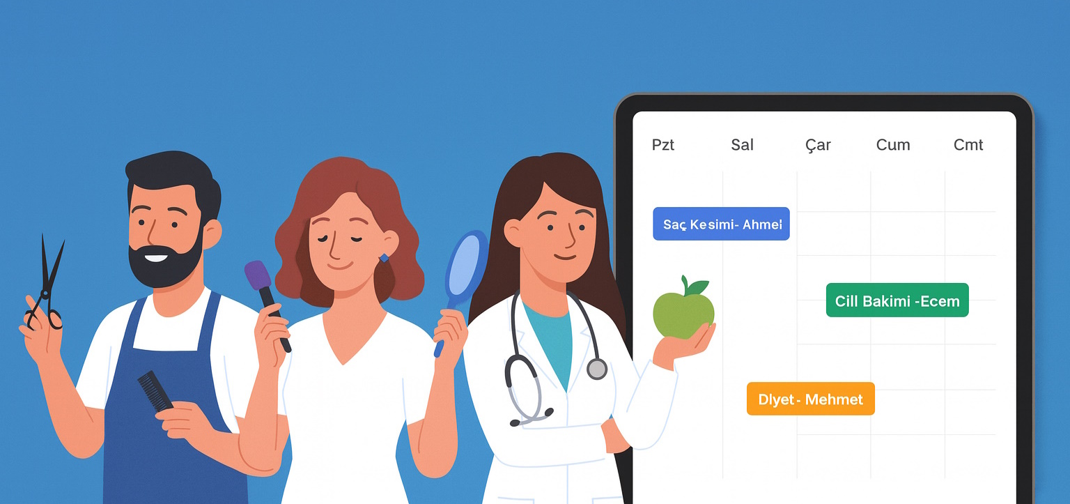 Kuaför, güzellik salonu, diyetisyen ve benzeri işletmeler için geliştirilmiş RezervJet ile randevu, müşteri ve kasa süreçlerinizi dakikalar içinde dijitalleştirin.